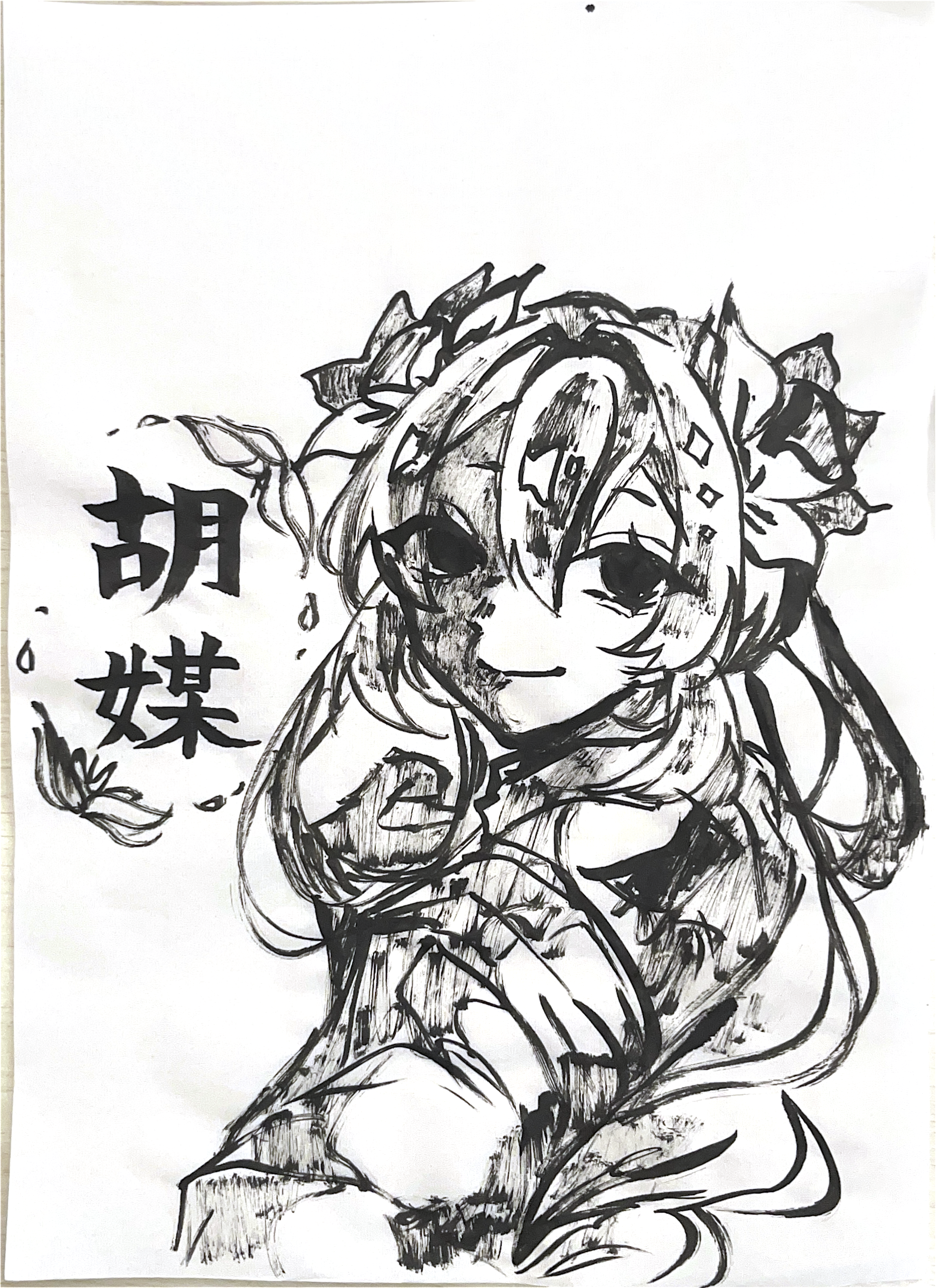 中学2年生の娘が書き初め宿題のついでに描いた墨絵にびっくりしてしまいました。